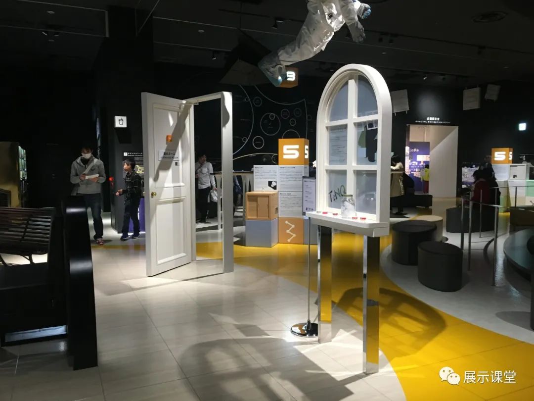 這個展區(qū)通過設置任意門、窗戶、頂面懸掛宇航員模型,讓空間變得更加有趣,充滿想象。還可以是圖版+氛圍營造,將展廳想要展示的內(nèi)容,融入到整個展廳設計空間場景布置中。