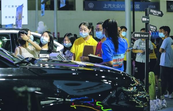 2020第十屆貴陽國際汽車展覽會7月9日至13日在貴陽國際會議展覽中心舉行。今年的貴陽國際車展,共有80余個全球主流汽車品牌參展,眾多暢銷車型展出。7月11日,恰逢周末,不少市民前來觀展。根據(jù)疫情防控要求,展館在客流達到最大容量后,將會進行限流。